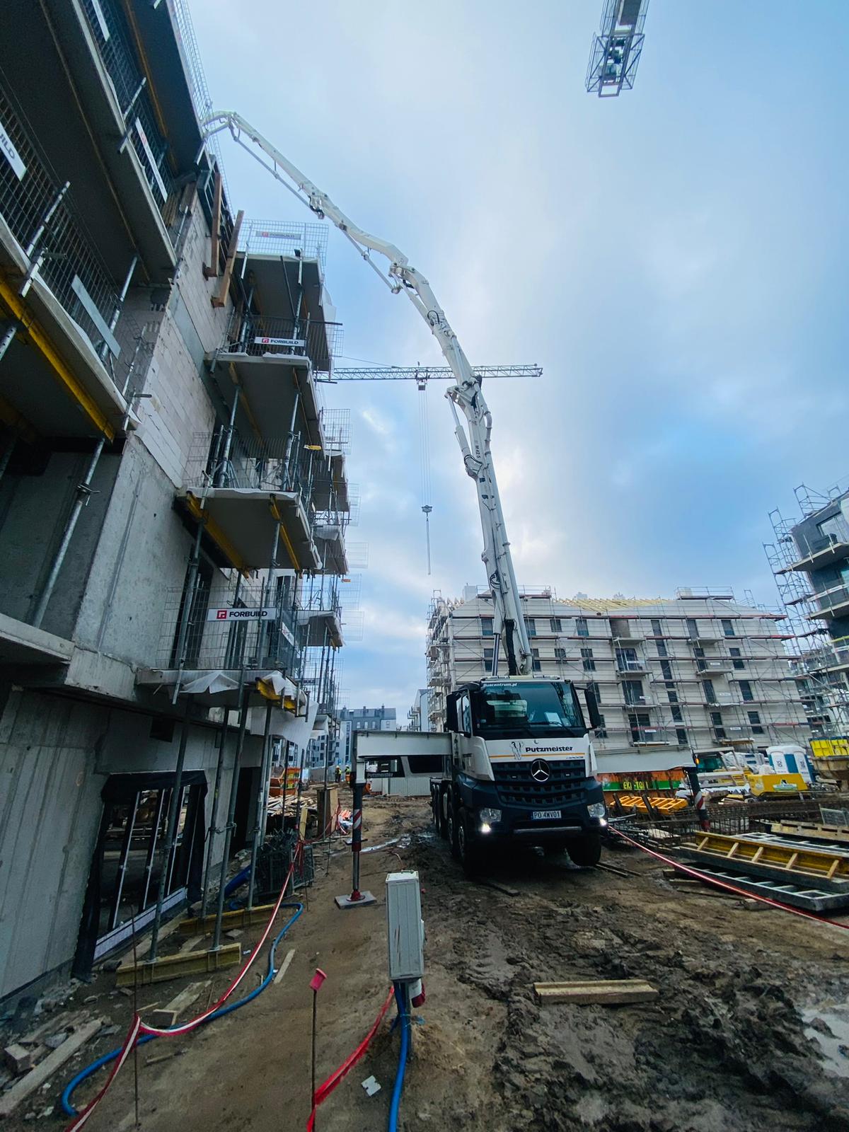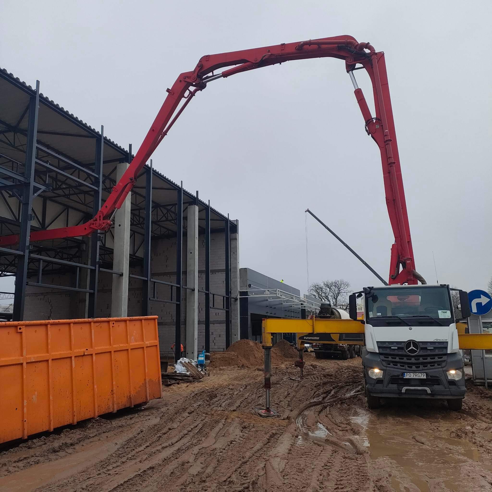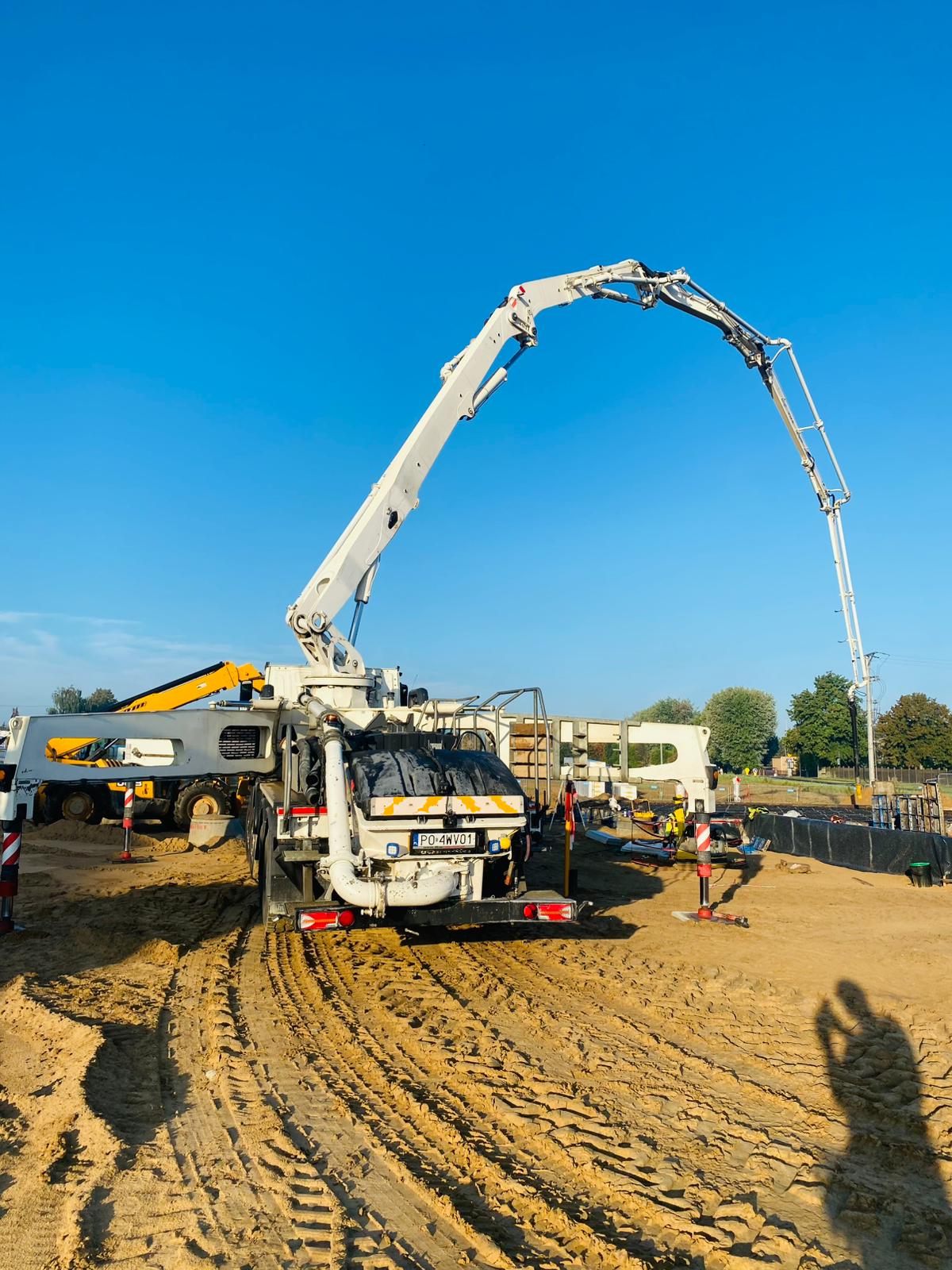 - Pompy do betonu o wysięgu od 24 do 70 metrów marki Mercedes Schwing oraz Putzmeister