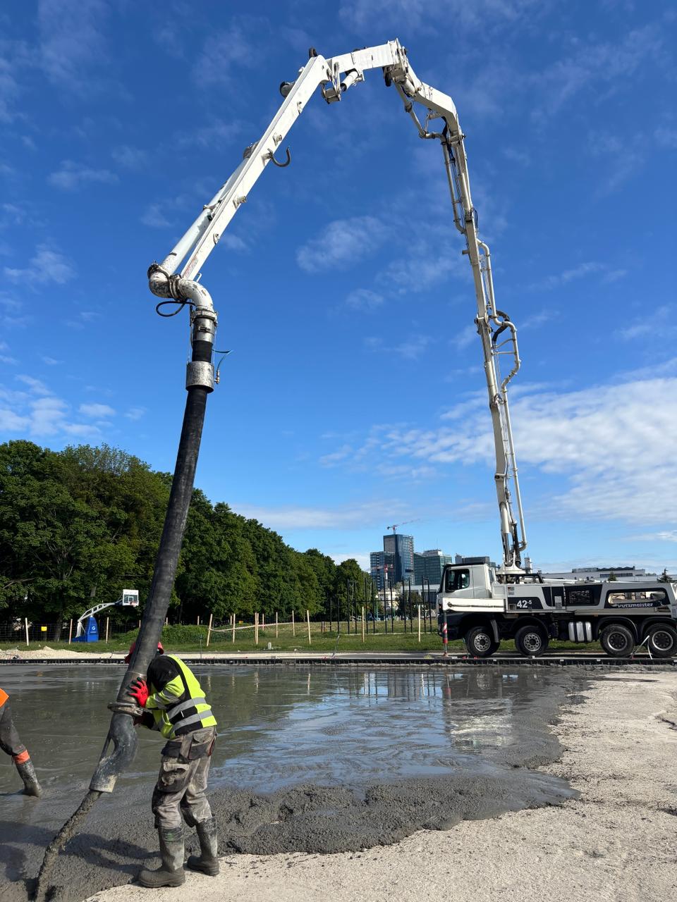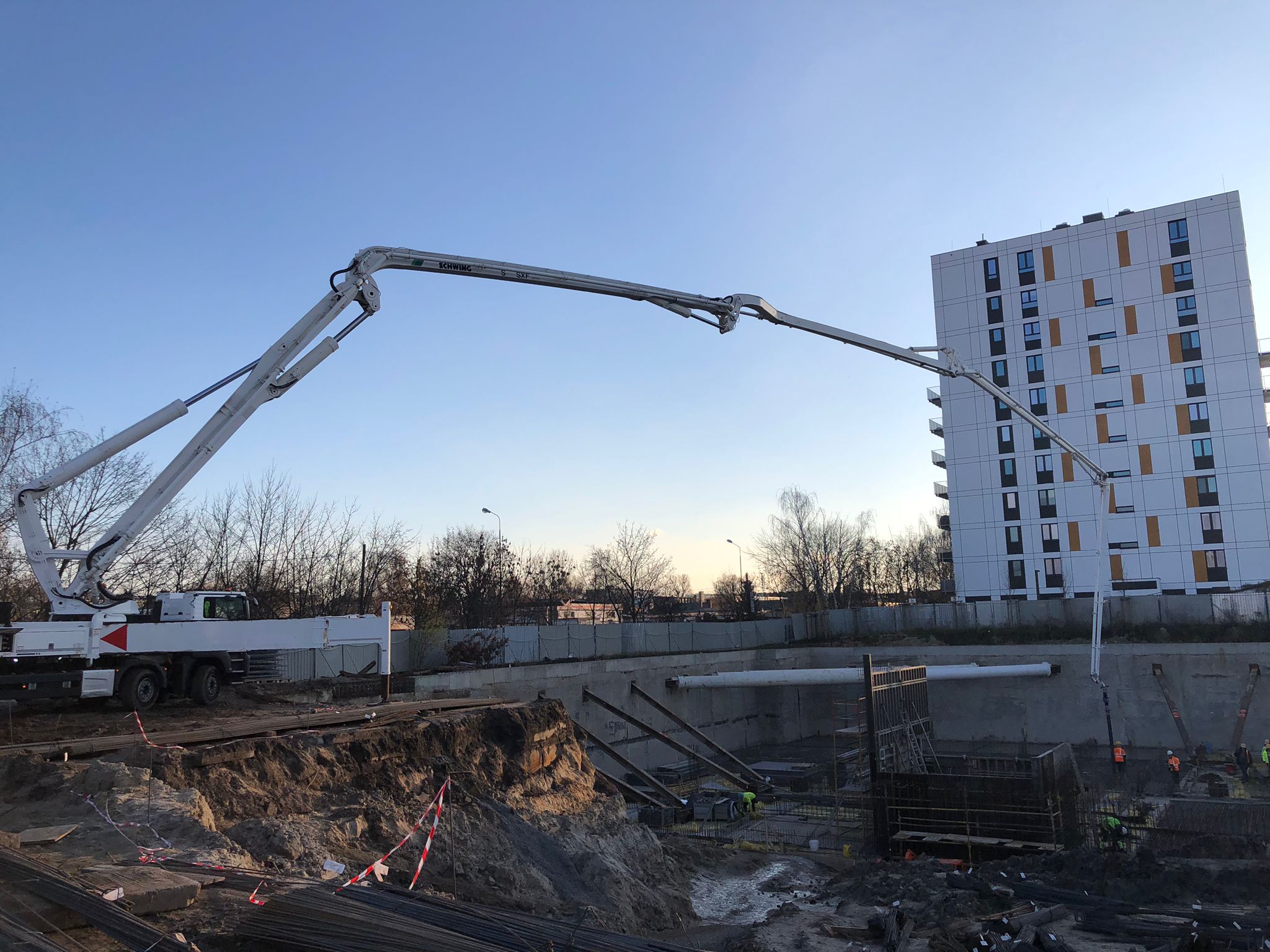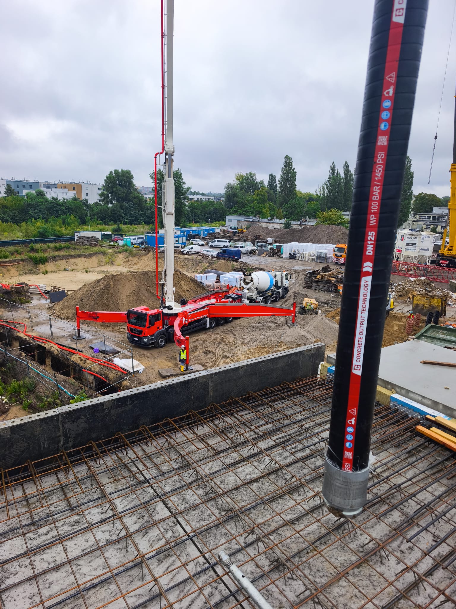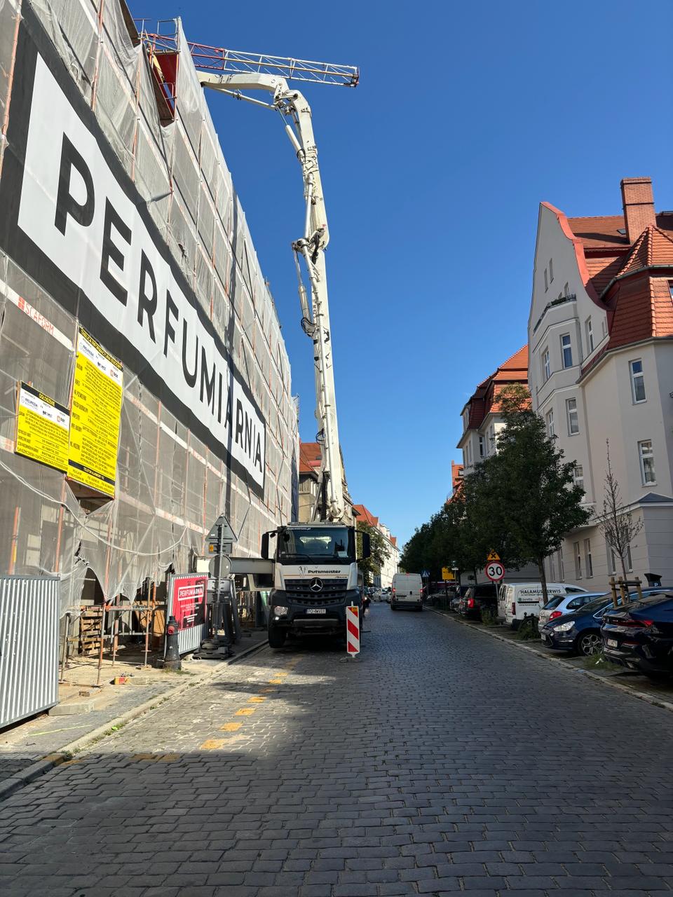 - Pompy do betonu o wysięgu od 24 do 70 metrów marki Mercedes Schwing oraz Putzmeister